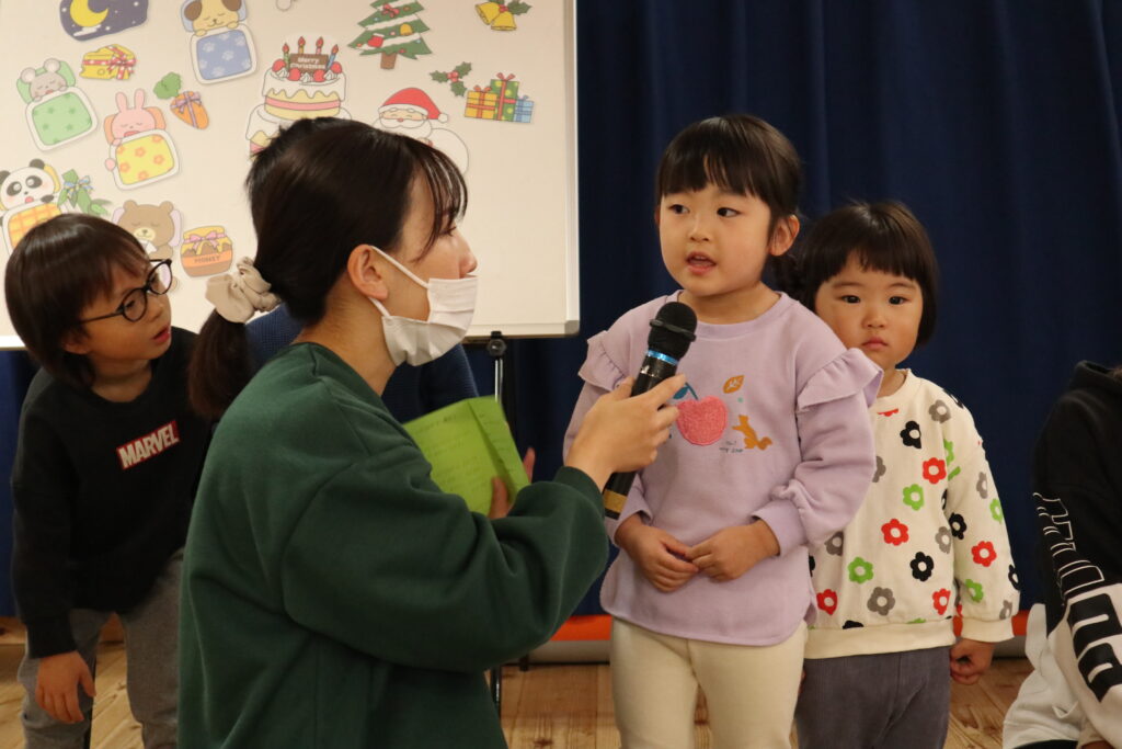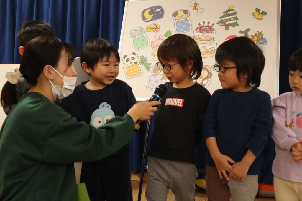 インタビューでは、好きな食べ物がりんごのお友だちがいたり、ももぐみのお友だちは、先生やお姉ちゃんが「なんでもよく食べます!」と教えてくれましたよ。